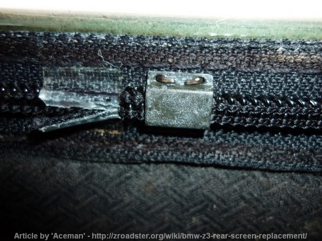 The zip is exactly the same length as the original making it easy to judge where to start zipping the new screen in which is the most difficult part of the job as it is quite fiddly but once on it is just a matter of taking it steady and slowly you don’t get the zip trapped particularly on the corners. I recommend zipping a few inches at a time and inspecting the teeth of the zip to make sure they are all located correctly as it is easy for one not to locate properly enabling you to go back and relocate it. Once zipped up all the way around the zipper just slides off the end and you just then have to secure the ends either with the original clamp if still usable, new clamps supplied with the screen or as I chose to stitch the zip ends shut which I found the easiest albeit laborious as it meant you were in and out passing the needle from inside to out.