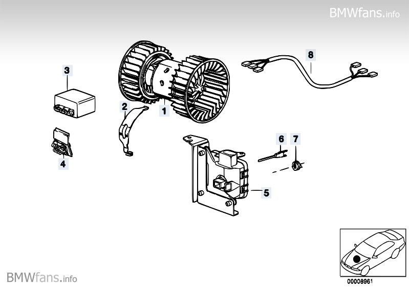 A common problem for our cars as they get older is a failed blower resistor, the symptoms for this is the fan only works on speed 4 (max). The blower resistor comes as two different parts depending upon the specification of your car.