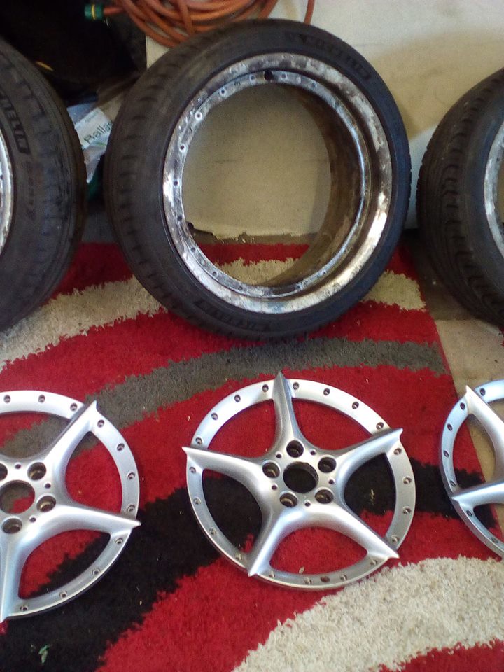 went over powder coaters in merthyr yesterday, they were very helpful didnt have any samples there to show me but said they could do the centres for £30 each and the same for the rims. so £240... they would do a complete wheel unsplit for £45, but thats not what i wanted so i need to decide in the next few weeks what i am going to do with these wheels...