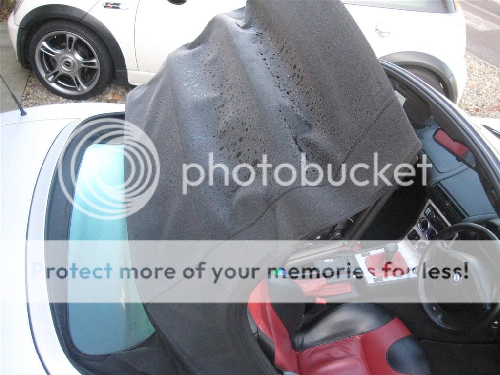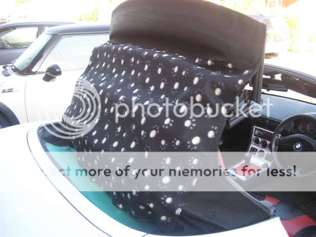 Although BMW produce a blanket (which hooks round onto the spars) to cover the screen, it doesn't afford any protection to the roof fabric itself.
