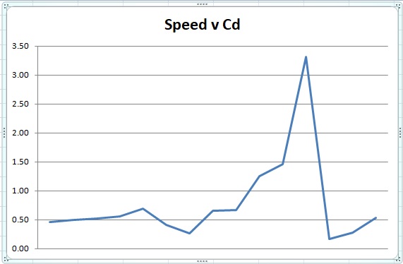 I've not included the speeds, but the high speeds are on the left of the graph (where the Cd is most stable at around 0.50).