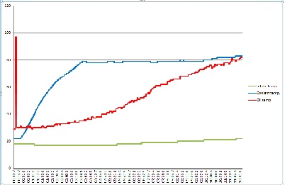 Don't know for sure but the thermostat for these is probably in the area of 85degrees C (just had a quick look on GSF and that says 97, sounds a bit high but what the hell), so the higher figures are going to be what the engine was designed to run at, anyone who's had a failed thermostat will know the difference it makes. The intake temperature surely can only be down to not having a fan blasting air about the place, makes me feel that with winter on it's way I'll be taking the mechanical fan off and re-routing the air intake, cold air being a lot better than hot when it comes to the intake. I'm going to have to try this new-fangled software stuff myself, see what's really happening under the bonnet. More things to do.:rolleyes:
