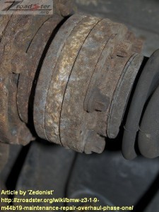 5) Repeat for the opposite side, you can now remove the Rear Anti Roll Bar complete with Drop Links, Note the worn bushes on the drop links: