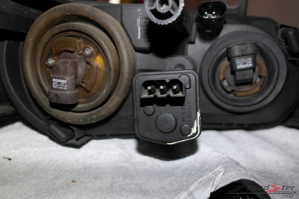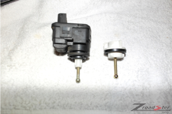 Third Job is to remove the head light adjustment motor from the old head lights, these just twist out, but you will need to pull them free as the pin is held in with a ball and socket arrangement. You then simply put in the new unit by pushing in and twisting until locked, the ball joint should engage automatically with the socket.